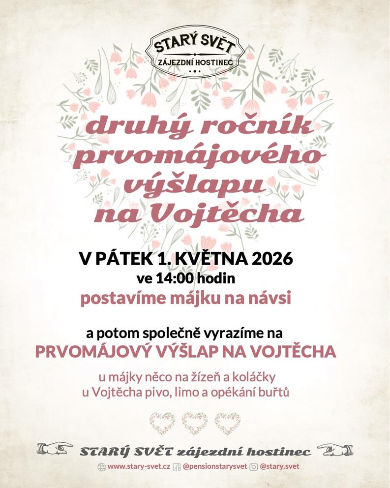 🕒 od 14:00 hodin stavění máje a potom výšlap na Vojtěcha