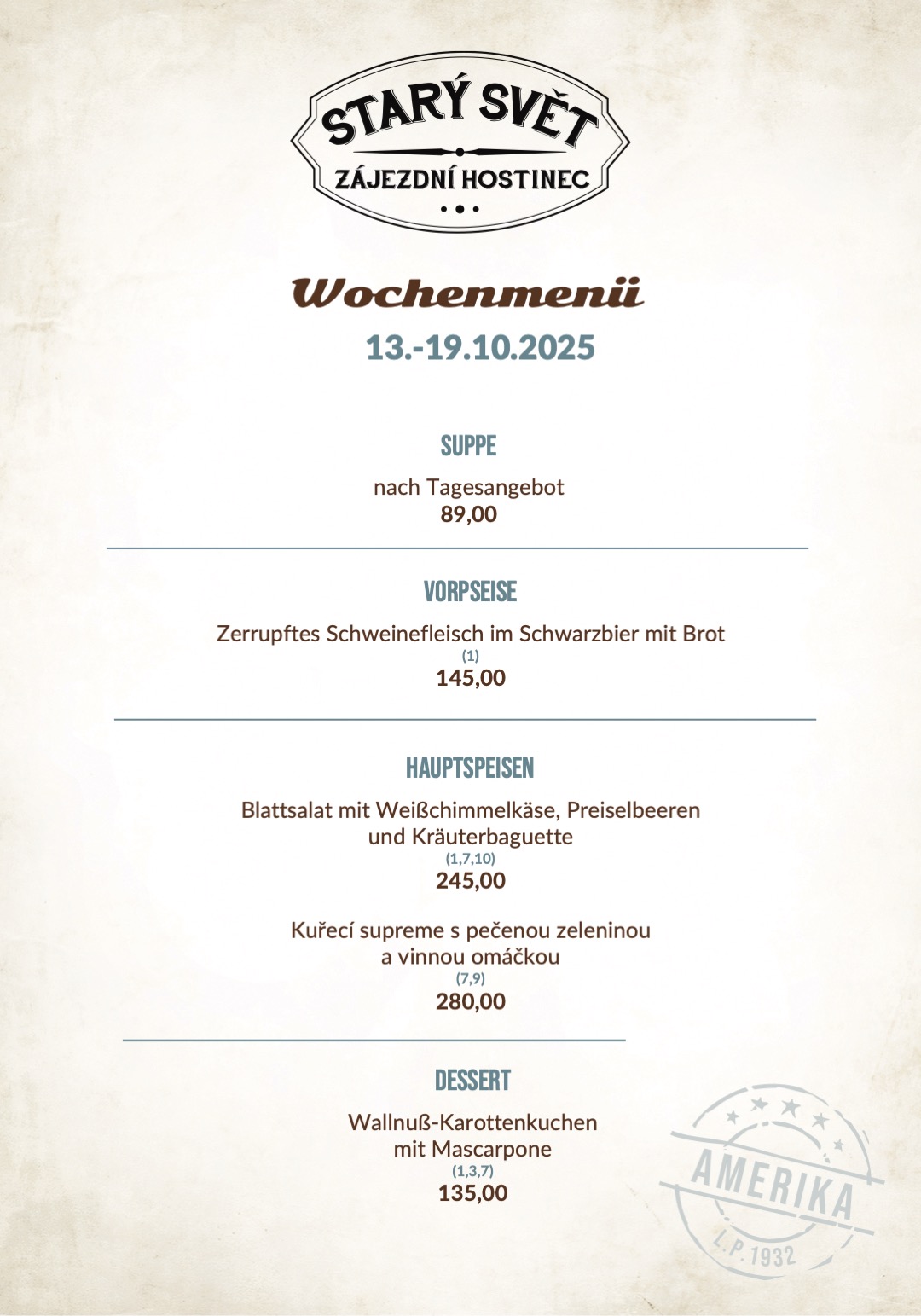 Starý svět, zájezdní hostinec, s.r.o. Amerika 9, 259 01 Votice +420 734 133 038 info‌‌M‌‌stary-svet.cz