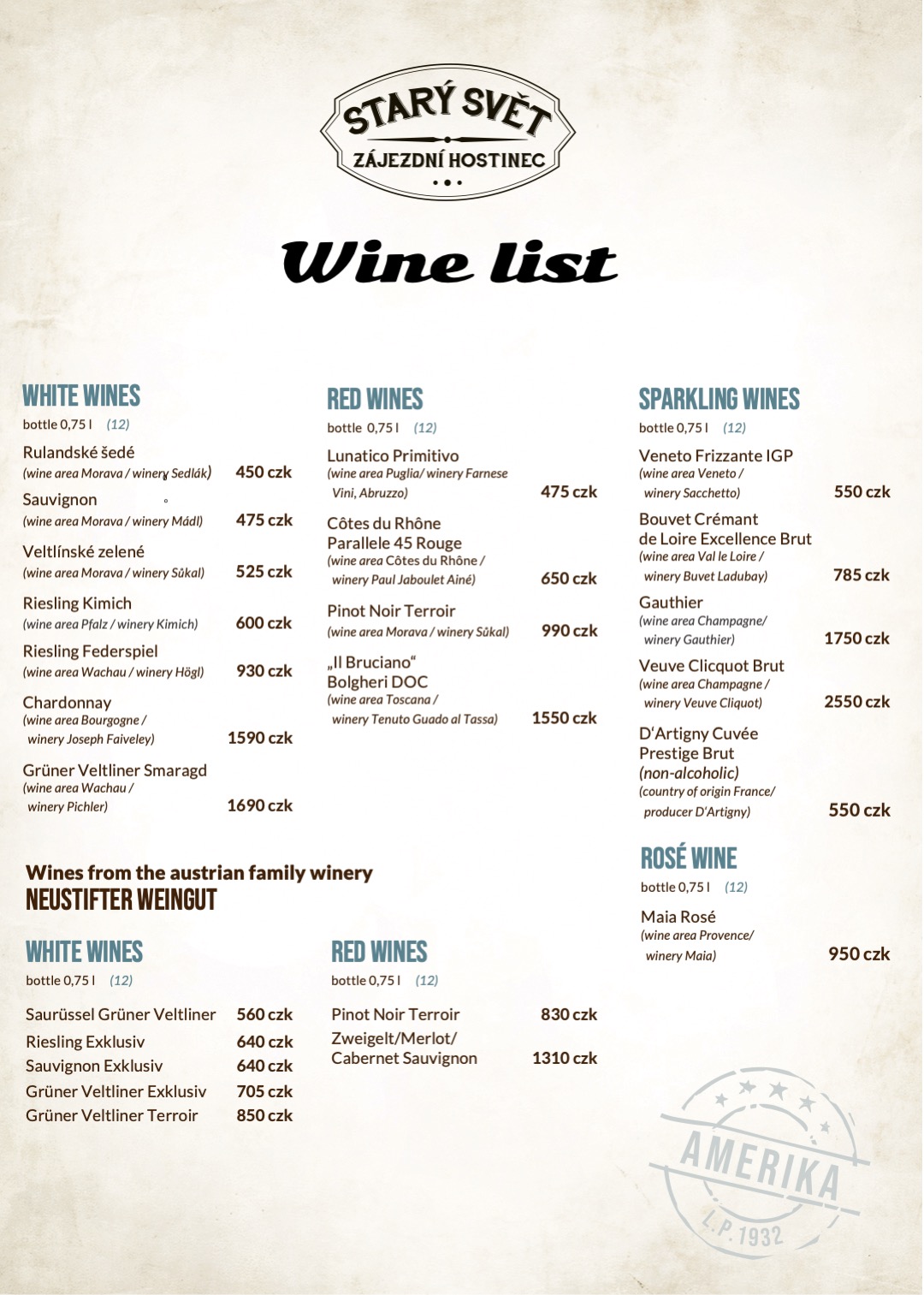 However, the dating of the first records of the "Hotel America" led us to the idea of restoring, or at least bringing our guests closer to the times long gone. A time when sitting down with friends over a good meal and a drink was a pleasant and natural part of both weekdays and holidays. We would like to transfer the nostalgia of the first republic life to everyone who visits us. Slow down your hectic pace of life and work and enjoy the comfort. Satisfy your body and soul and try to travel back to the times when life flowed a little slower.